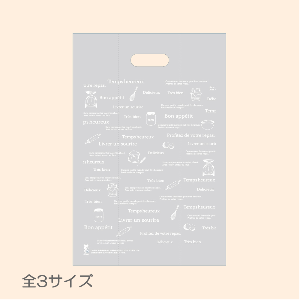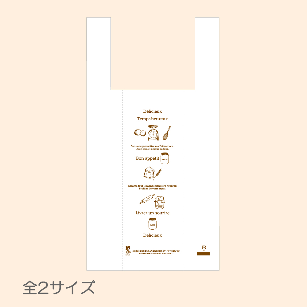 スイーツにもベーカリーにもご使用いただける汎用性抜群のポリバックとレジバックの2展開です。
