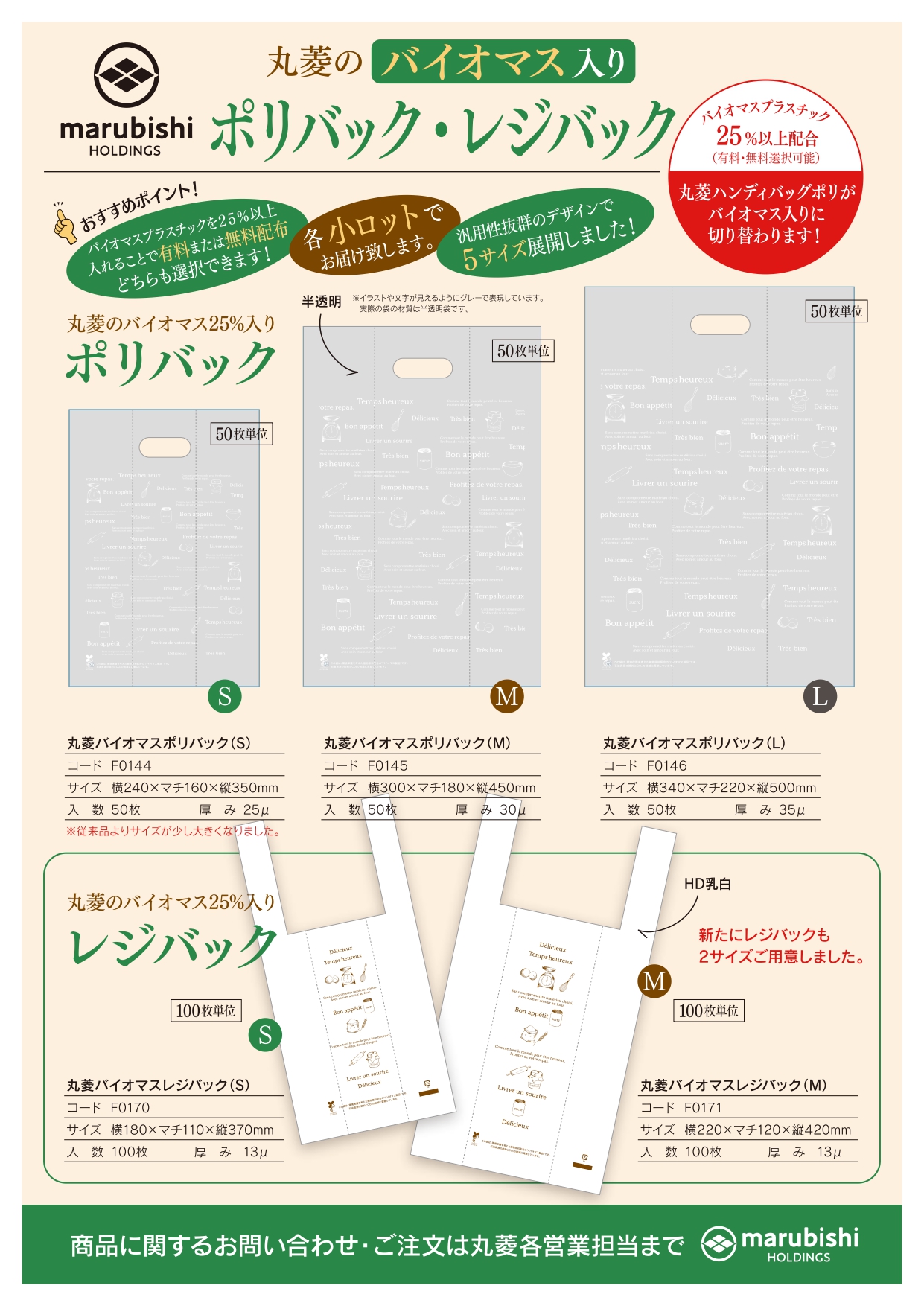 バイオマスプラスチックを25%入れているため、有料または無料配布どちらも選択可能になります。