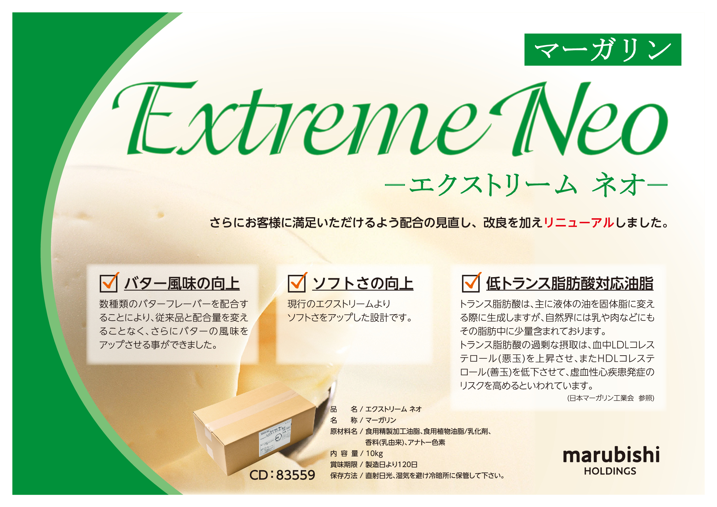 2006年の発売以来、多くのお客様にご使用いただいている汎用性のある10kg流し込みマーガリンです。