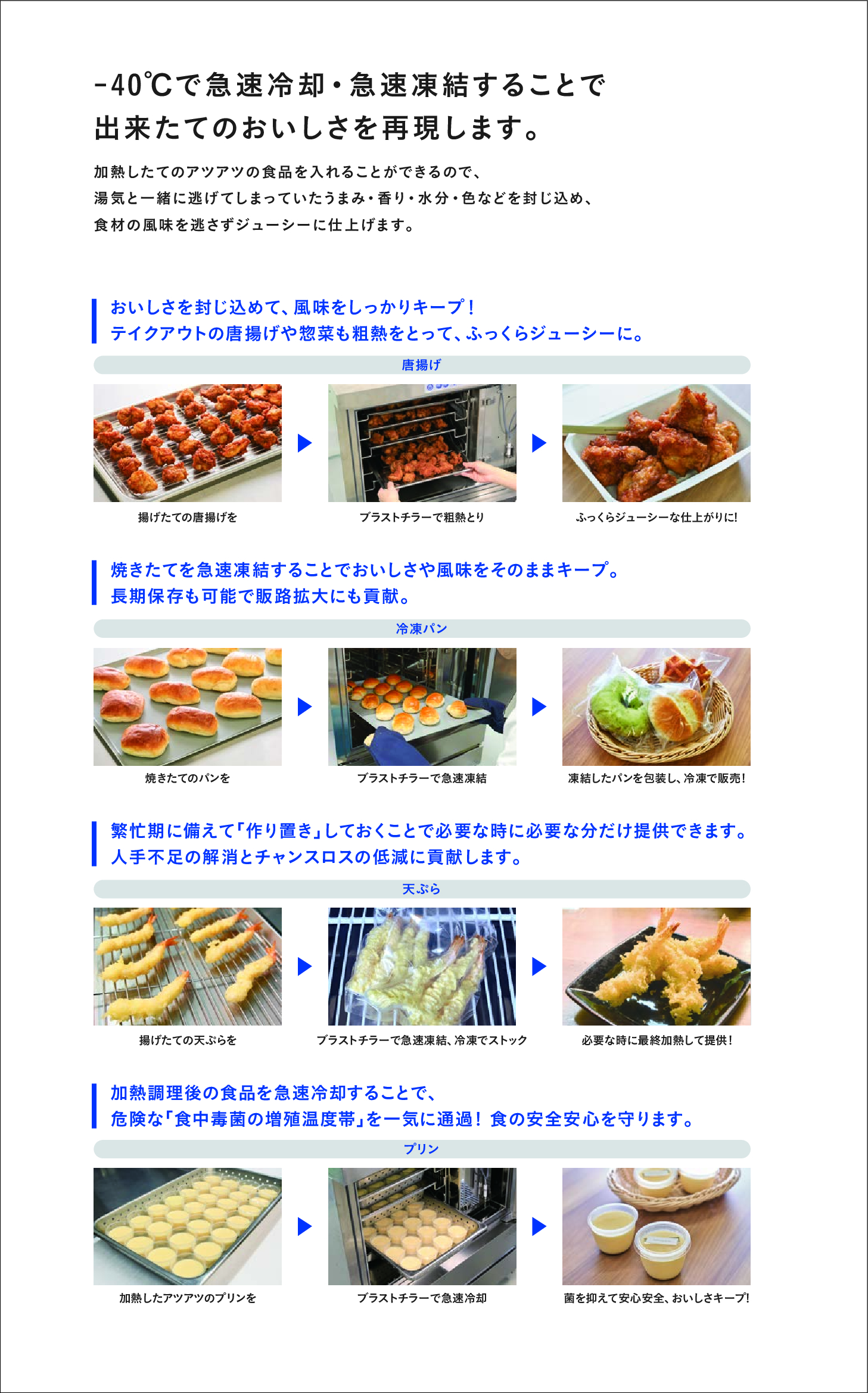 -40℃で急速冷却・急速凍結することで出来立てのおいしさを再現します。